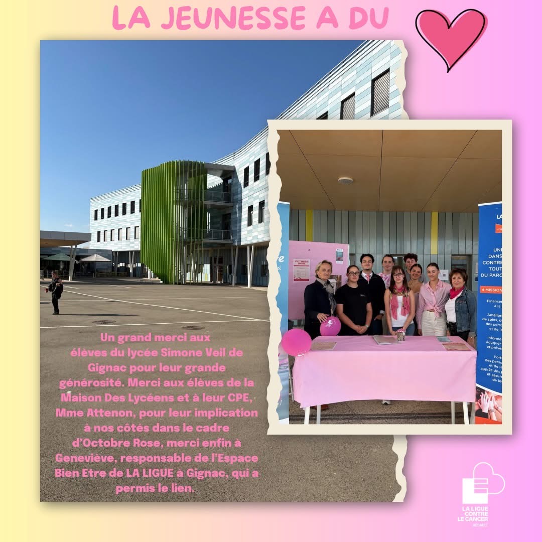 La Maison Des Lycéens a organisé une journée spéciale le jeudi 16 octobre à l'occasion d'octobre rose, en partenariat avec l'association Escale Bien-être, basée à Gignac.