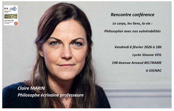 Cette rencontre aura lieu le vendredi 6 février à 18h au Lycée Simone VEIL. Elle est ouverte à tous (entrée libre).